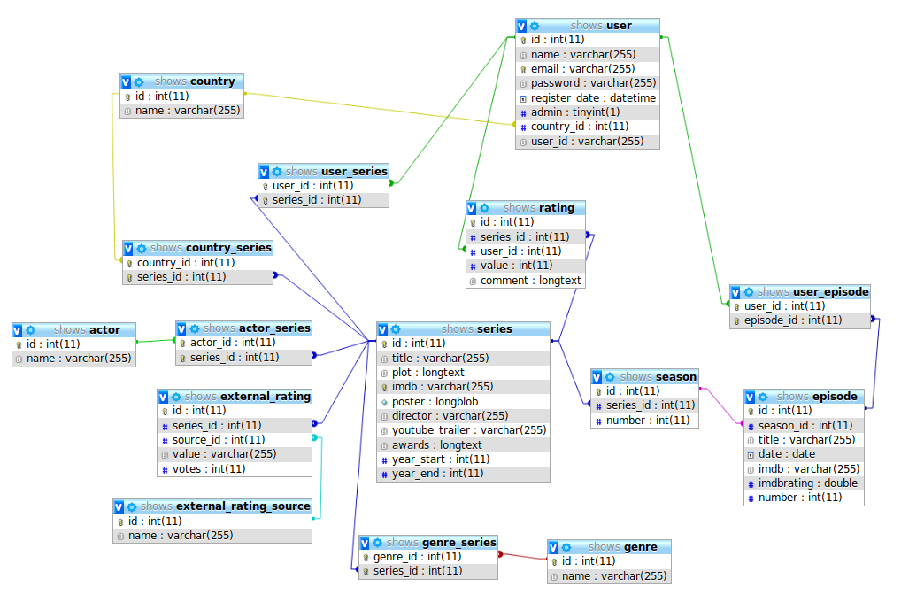 Dans ce TD, nous utiliserons une base de données contenant des séries, voici ici la structure de la base de données: